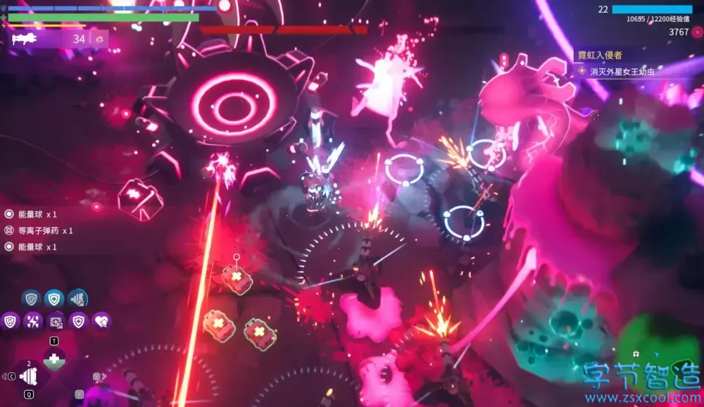 《霓虹入侵者》,英文名为From Space。本作是一款高自由度的俯视角射击、双摇杆射击类游戏,可单人或多达四人联机。小伙伴们可以借助丰富的武器库在充满霓虹色彩的末日世界里保卫地球!