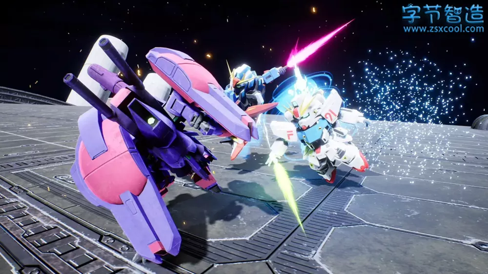 与支持你的 2 个伙伴展开战斗。在多人游戏中,您可以在 3 人团队中与最多 2 名其他玩家一起玩游戏。独自或与朋友一起享受这款全新的 SD Gundam 动作角色扮演游戏。