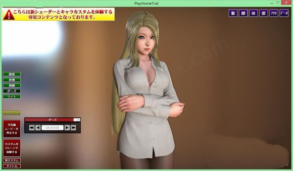 playhome(家族崩坏)是一款由日本illusion社游戏公司在2017年10月份发行的全新绅士系列游戏大作,退出以后就受到了大家的热烈欢迎。老司机们应该知道这个游戏公司是由多么牛了吧,包括其旗下出品的各种绅士游戏,可以说是每一位宅男电脑中必备收藏的游戏资源了。游戏方面打在的是全新的3D渲染引擎,人物方面相比前作HoneySelect甜心选择来说得到了极大的提升,人物肤色更加细腻,细节上表现的更加的棒了,另外,包括人物光效方面也更加柔和,总的来说就更加偏向于真实人物了。playhome(家族崩坏)豪华中文汉化典藏整合版最有特色的还是其著名的捏脸系统以及高度自由的玩法了,玩家通过游戏提供的捏脸系统能够diy出任何你想要的女性角色,只要你有能力的话,FBB,LYF等甚至是初音未来也全部可以制作出来,成为你游戏后宫中的一位哦,是不是光想想就十分的激动了呢。而且这款游戏还有非常令人期待的VR模式哦,搭配上3D虚拟眼睛设备,那效果真的是杠杠的呀,可是虚拟设备有点贵,如果想要体验的朋友千万不要错过哦,赶紧来下载吧!