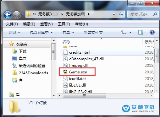 1、在艾薇站下载游戏包,解压后找到如图所示文件双击即可。