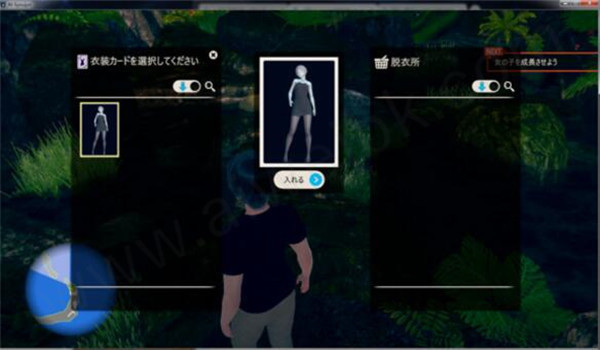 河边有更衣室,需要你在创建人物的编辑器里保存服装,然后把服装搭配放到更衣室里,这样妹子就会自动换成你放的服装入浴。