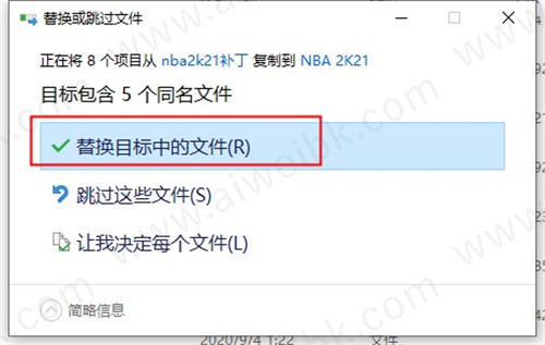 4、随后会提示是否替换,选择替换目标中的文件即可;