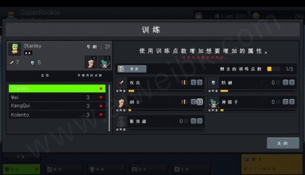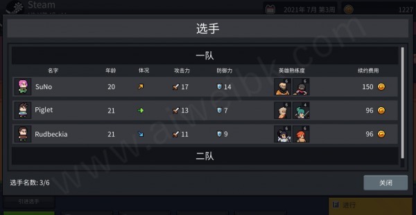 游戏初期我们可以靠着开始的4名队员进行各种比赛,这是后的比赛其实没有那么重要,大部分时间都是用来给玩家刷属性用的。但从开始打联赛之后,这个游戏就开始变成了数值游戏,在联赛上你会发现,使用最初的4名队员是根本不可能赢一场,对面的选手数值都比自家选手的高很多,有时候能高达一到两倍,所以我们需要招募一些初始数值就很高的队员进行训练栽培,先将人物的数值提起来。而且比赛中也是非常讲究运气成分,因为这游戏内的英雄会守尸,运气好会一直守,一复活就死,就这样反复的刷,能守到一次尸,这一场就稳了。