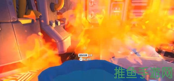 2、接着将小桶灌满水,后又回到出生地区,左边有个火苗的一艘飞船,不需要利用水罐将火扑灭大火。