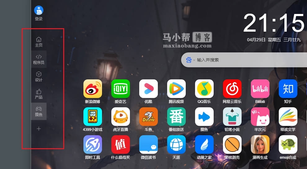 它将天气、日历、头条新闻、倒计时、股票、备忘录、待办事项、网址导航全部聚集在起始页。